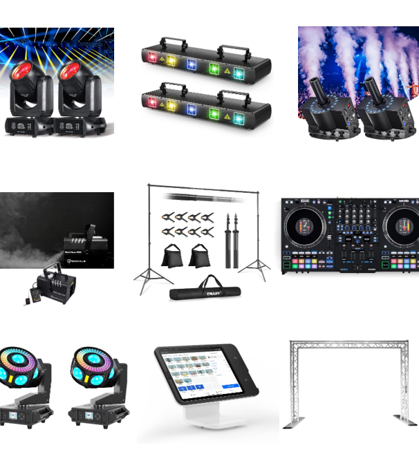 Our equipment rental gear is designed to elevate your event experience with top-quality lighting setups, DJ equipment, and special FX.